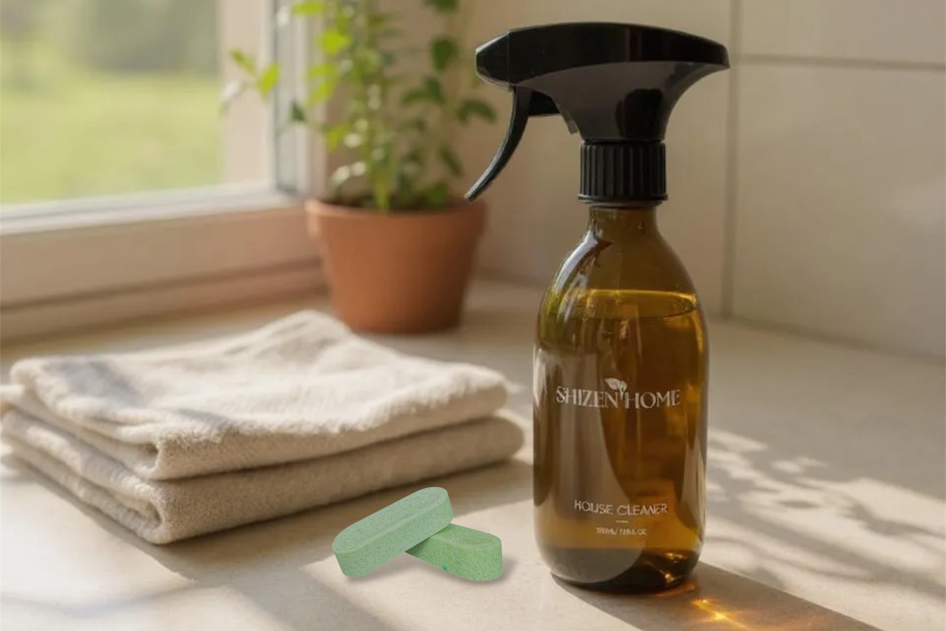 私たちの地球は、日々増え続けるプラスチック汚染に直面しており、さらに日用品に含まれる強い化学物質によって私たちの健康も害されています。SHIZEN HOME は、この状況を変えることに取り組んでいます。コンパクトな製品をつくることで、CO₂排出を減らし、使い捨てプラスチックを削減し、ごみの最小化に貢献しています。さらに、毎日の掃除により自然なソリューションを取り入れることで、家庭や体に入り込む有害な化学物質の量を減らしています。