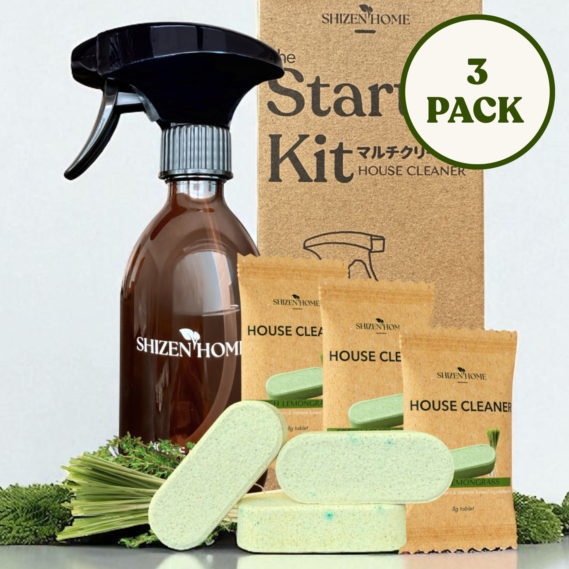 スターターキットには、スタイリッシュな300mlの琥珀色ガラス製スプレーボトルと、環境に優しいクリーニングタブレット3錠が含まれています。水を加えるだけで、安全で効果的、さらに繰り返し使えるクリーニングソリューションが完成し、ご家庭にも地球にも優しい選択です。